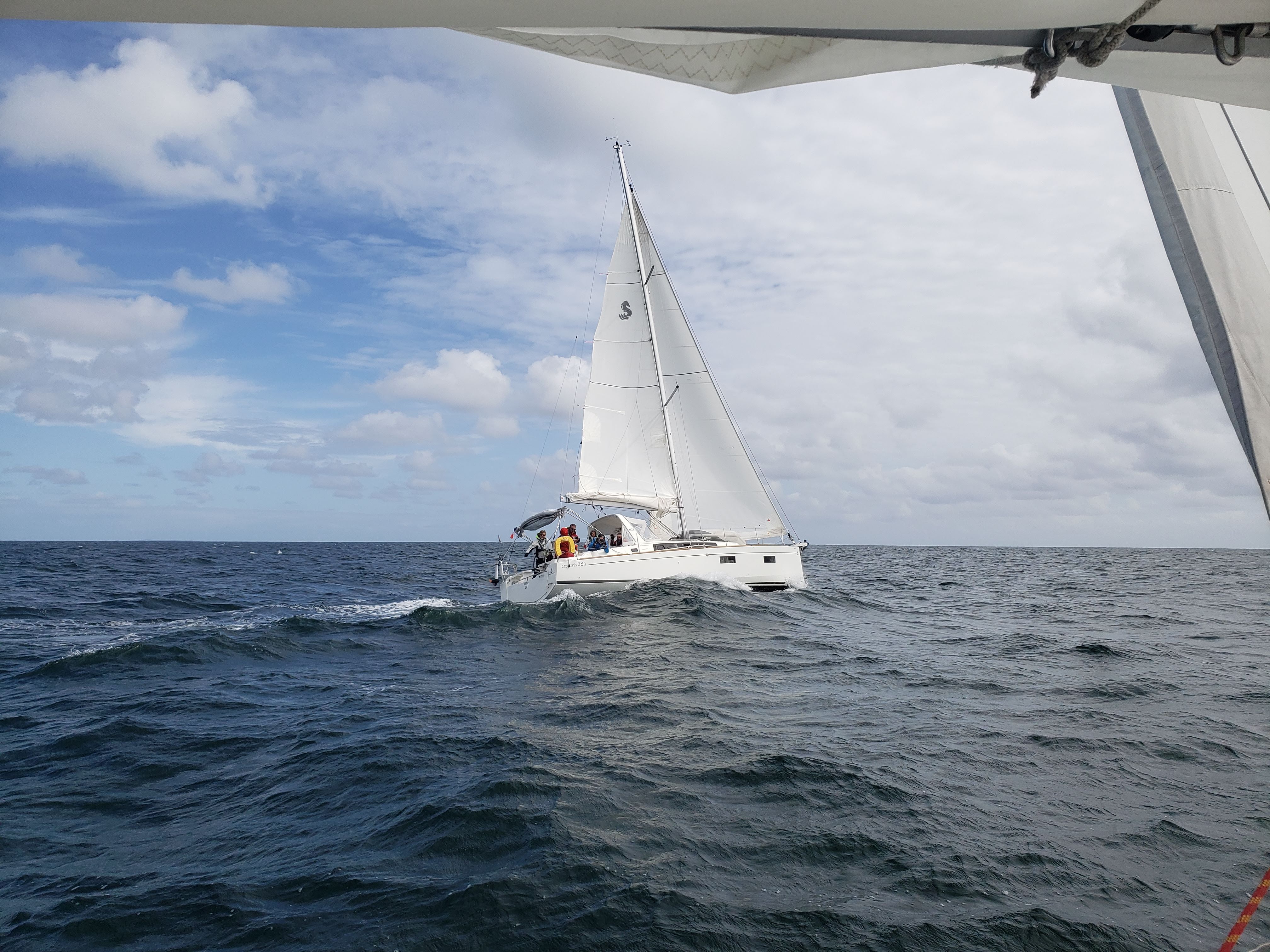Eric, plus aguerri, a choisi de traverser directement vers la Manche tandis qu’Armand et Julien, confrontés à une mer agitée et voyant plusieurs stagiaires malades, ont pris la sage décision de dérouter vers Guernesey. Le but n’était pas la sécurité — la traversée était faisable — mais le plaisir et le confort de tous les participants. Une décision qui a permis de profiter pleinement de la croisière plutôt que de subir la mer hachée.